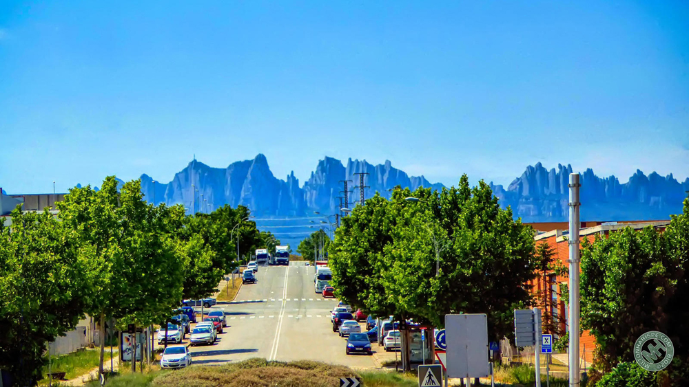 Montserrat, quite literally Serrated Mountain, is a mountain range with multiple peaks about 38 mi (62 km) and about one hour’s drive from Barcelona. It is part of the Catalan Pre-Coastal Range. The main peaks are Sant Jeroni 4,055 ft (1,236 m), Montgrós 3,674 ft (1,120 m) and Miranda de les Agulles 2,972 ft (903 m).